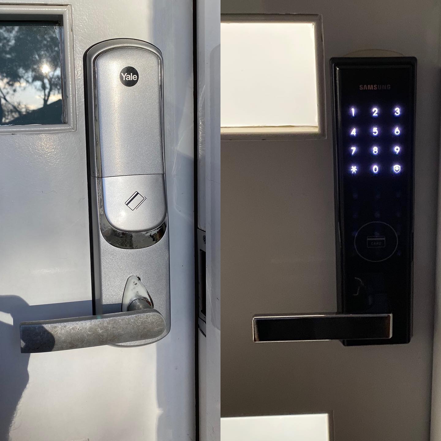 Upgrade from Gainsborough Trilock to Samsung Biometric lock #locksmithessendon #locksmithmelbourne #tlcsecurity #samsungsmartlock #fingerprintlock #lockinstallation #tlclocksmiths #keyless #keylessentryButton